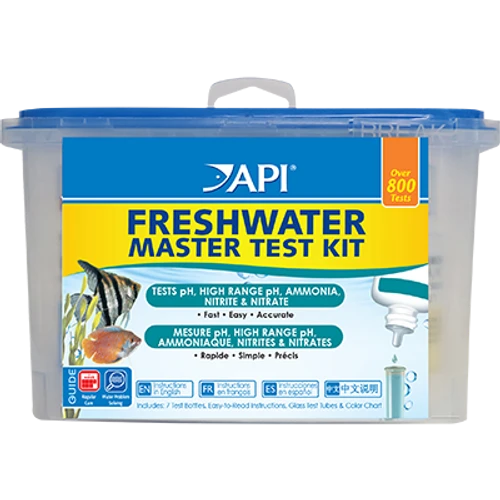 The API® FRESHWATER MASTER TEST KIT measures the 4 most important levels in freshwater aquariums quickly and accurately, including pH, high range pH, ammonia, nitrite, and nitrate. With scientific accuracy for professional results, the reusable FRESHWATER MASTER TEST KIT comes with 4 glass test tubes with snap-tight caps and a convenient holding tub for easy storage. Also includes a step-by-step instruction booklet with a colour chart that provides information on how to correct unsafe water conditions.