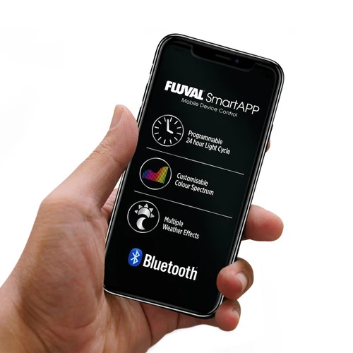 Bluetooth LED lighting with Aquasky LED technology. Light temperature, colour spectrum and intensity can be controlled using the FluvalSmart App via your iOS or Android device. A gradual 24-Hour light cycle and multiple weather effects allow for even greater customization, enabling you to recreate virtually any aquatic environment from around the world.