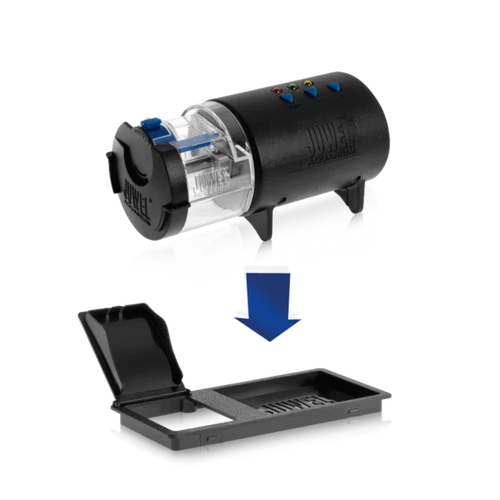 The JUWEL automatic feeder is the perfect addition to your aquarium. Every JUWEL aquarium is already equipped for the easy assembly of this automatic feeder, making it ready for use immediately.