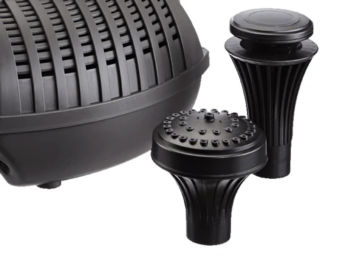 The Oase Aquarius Fountain Set Eco is a fountain pump set complete with the Vulkan and Lava fountain heads as well as a controlable second outlet for a small water spout or waterfall.